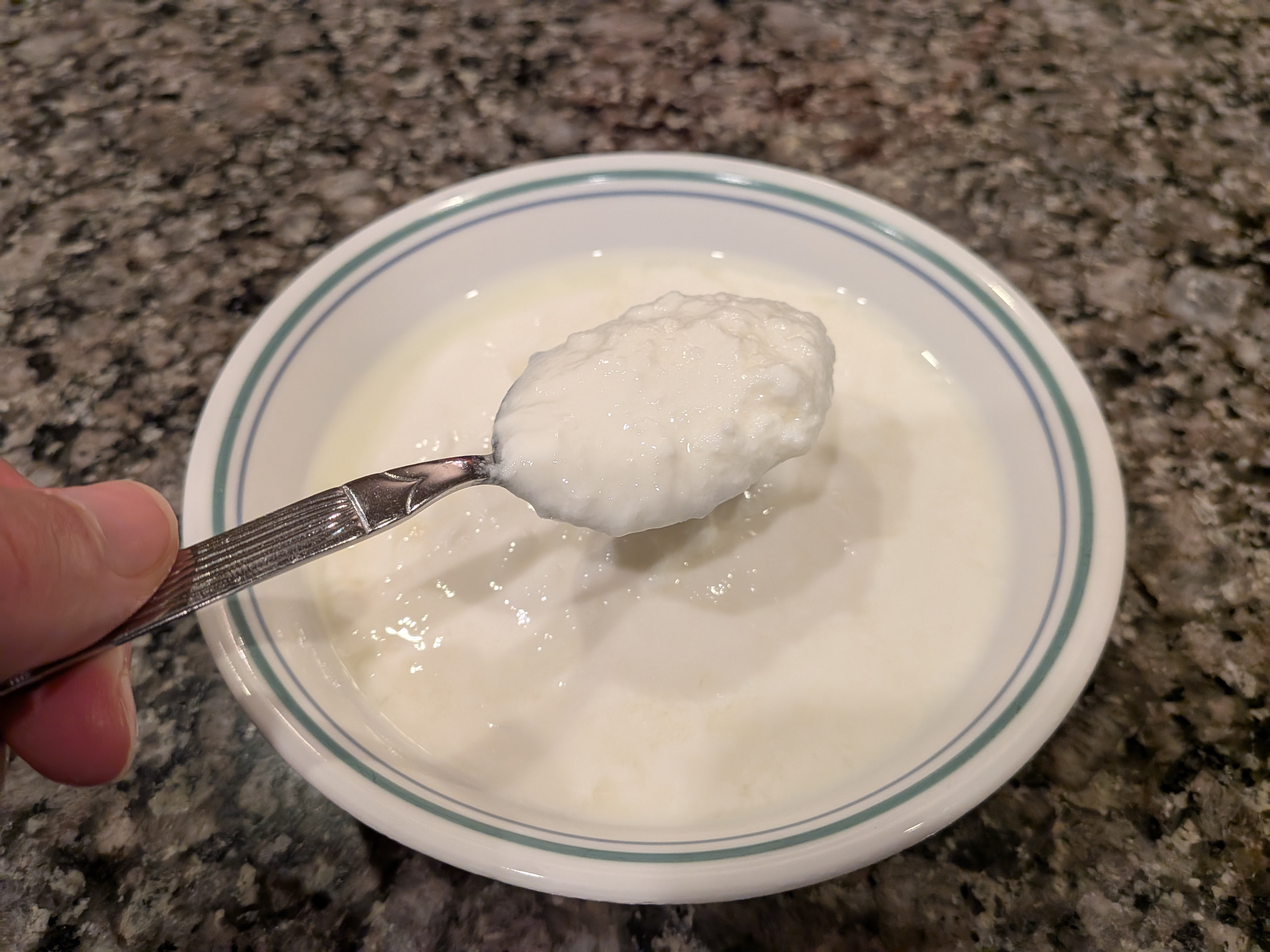 Not all clabbered milk is to be desired, however; if the dairy animal has mastitis, or if the teat canal contained bacteria that is less desirable due to uncleanliness, such as coliforms or clostridia, the resulting clabber may never form at all, or it may be overly separated, chunky, have an off smell, and so on. Clabber contaminated with bad bacteria could make you sick, so pay attention to what good clabber is like. Proper clabber has a pleasant cheesy and/or yogurty smell to it, and if you look at the curd it shouldn't have the appearance of having many gas bubbles, but instead look quite smooth and homogeneous. At least until you shake or stir it, it will be smooth, but it should break into fragile and loose curds once you do.